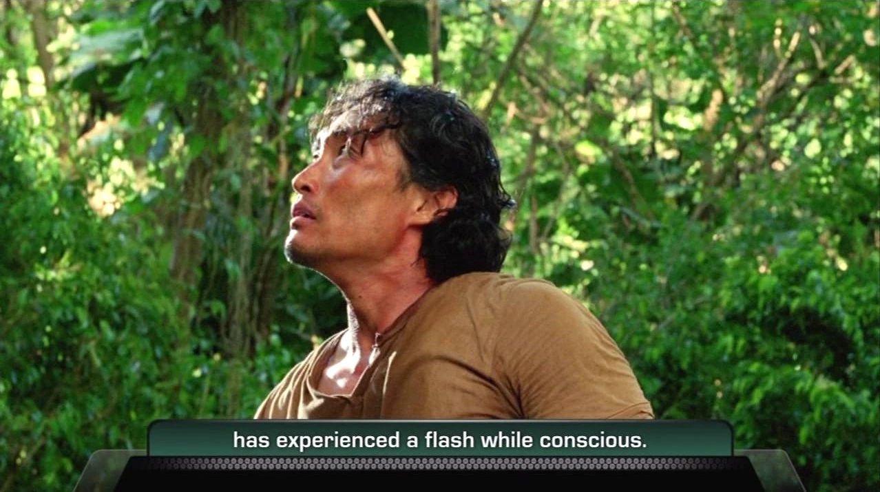 - This is the first time that Jin / has experienced a flash while conscious. / This is because Jin was unconscious / and floating in the water / after the freighter exploded.
