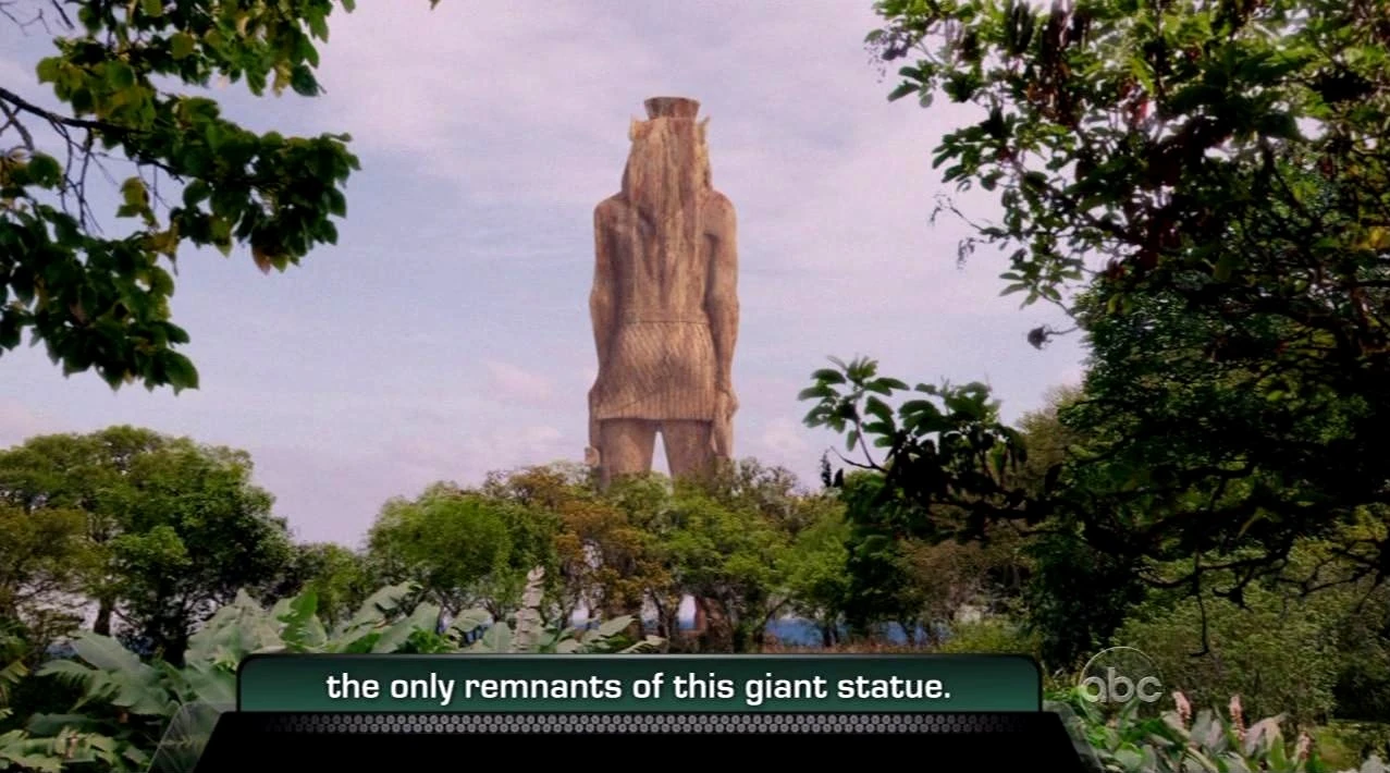 - In the Season 2 finale / "Live Together, Die Alone" / Sayid, Jin and Sun saw a giant 4-toed foot / the only remnants of this giant statue.