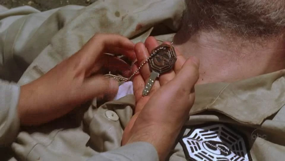 Desmond retrieves the fail-safe key from Kelvin's neck in ("Live Together, Die Alone")