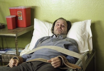 At midday on December 24, 2004 (freighter time), Sayid and Desmond landed on the freighter with Lapidus. Desmond, who by then was also exhibiting the disorienting symptoms of temporal displacement, was taken by freighter crew members and locked in the sickbay along with Minkowski. Recognizing Desmond's symptoms, Minkowski offered to assist Desmond in going to the disabled radio room to try to restore contact with the outside world and call Penelope Widmore, the "constant" Desmond needed to end his flashes between past and present. Desmond and Sayid unstrapped Minkowski, whose nose had begun to bleed, and they proceeded out of sickbay to the radio room. Once there, Minkowski began to experience convulsions and finally, uttering "I can't get back", Minkowski died in Desmond's arms. ("The Constant")