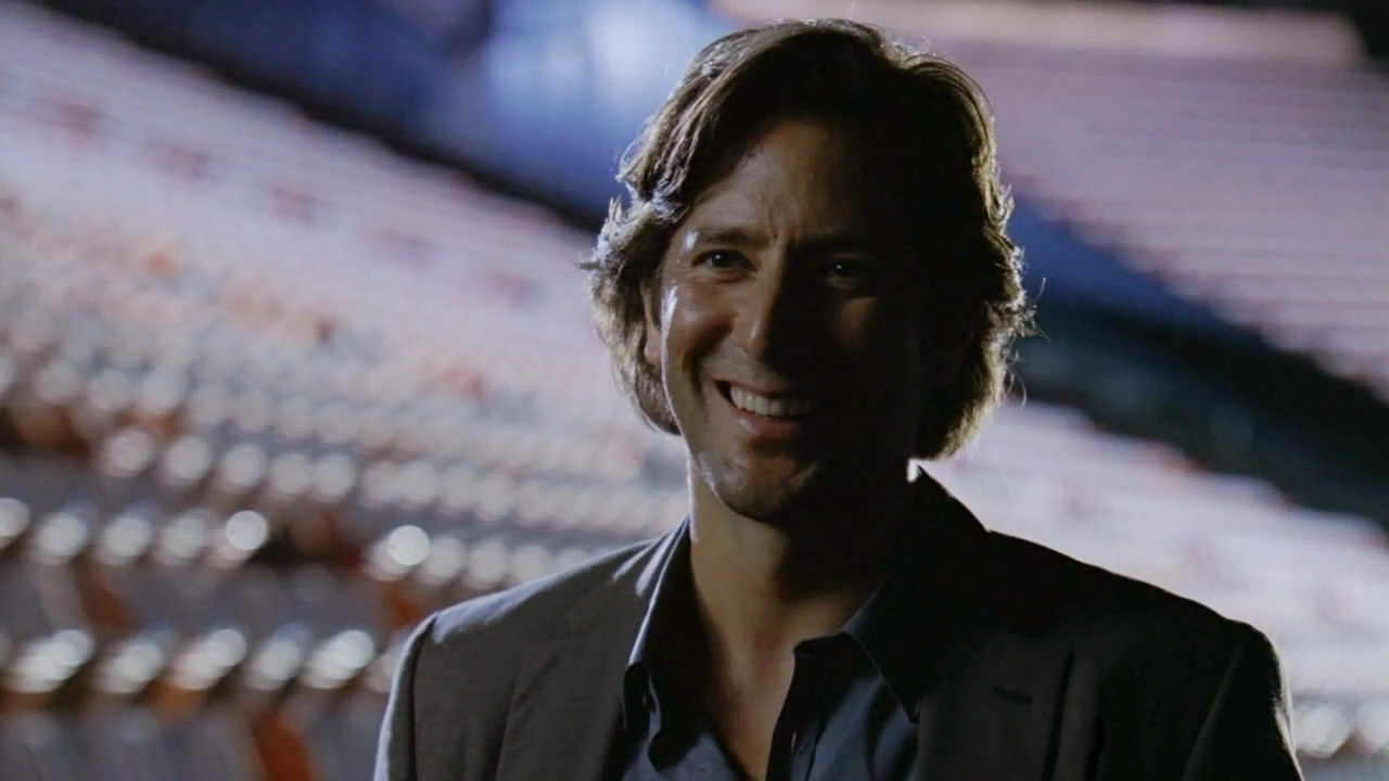 At his limo, Desmond has a drink, when a knock comes at his window. The man knows Desmond's name and introduces himself as Daniel Widmore, saying that they need to talk. Desmond starts to apologize for Charlie's absence but Daniel asks if he believes in love at first sight. Daniel tells of his love for a redhead who works at the museum. He says when he saw her it was as if he already loved her. He states that on that same night he woke and wrote in his notebook. He shows Desmond the notebook entry and explains that a mathematician friend said that these were advanced quantum mechanics equations which would need a lifetime of study to understand. ♪ He tries to explain to Desmond that it is as if something catastrophic had been about to happen and the only way to stop it had been to release a huge amount of energy, like setting off a nuclear bomb. He rhetorically asks whether this life was not meant to be and whether there had been another "life" in which, for some reason, "we changed things." ♪