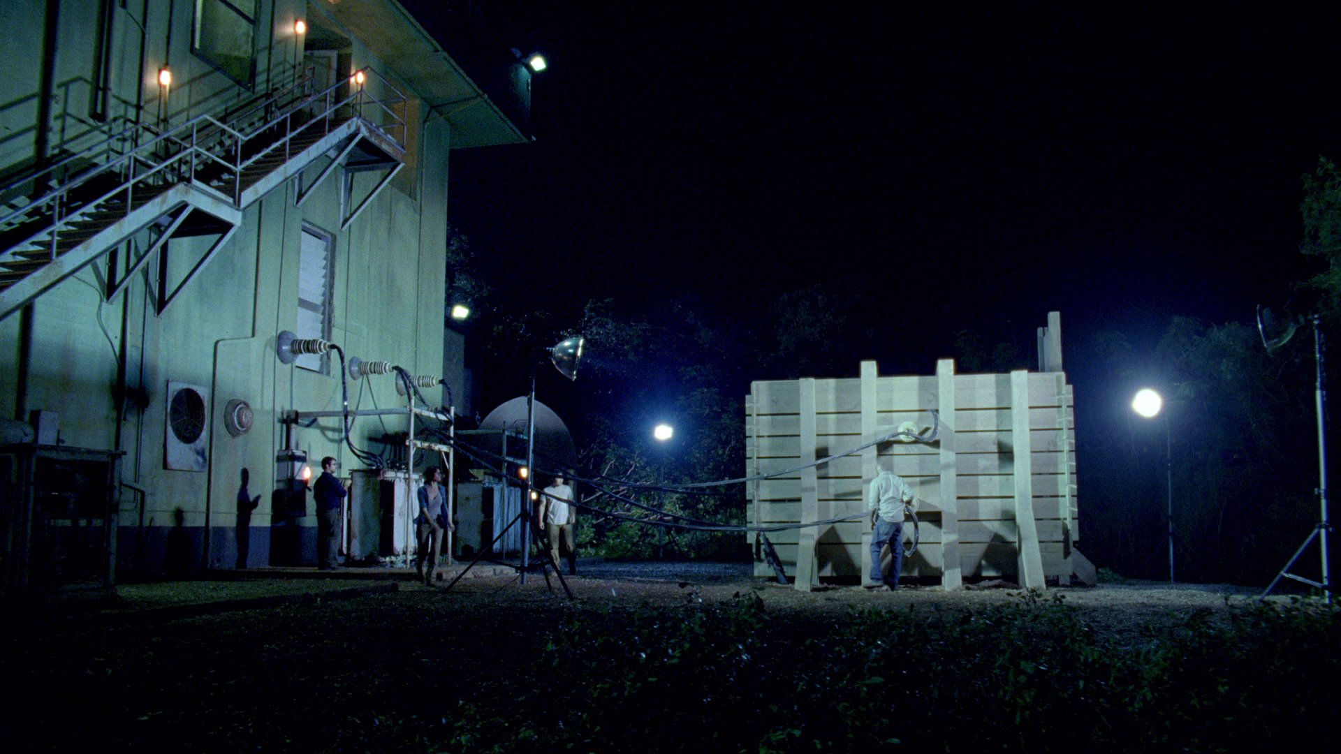 As Zoe leads Jin outside they pass generators, capacitor equipment, major cabling, and one large central piece of equipment shaped like a cube. Upstairs in the control room of the Hydra Station, preparations are underway with laptops, monitors and electrical controls. Seamus says to Zoe that they aren't even close to being ready. They test the generator at full power but a circuit soon fails. Seamus sends a technician named Simmons to check the circuit on the solenoid coils in the central structure outside. Seamus tells the white rabbit, Angstrom, that he is going in there next.