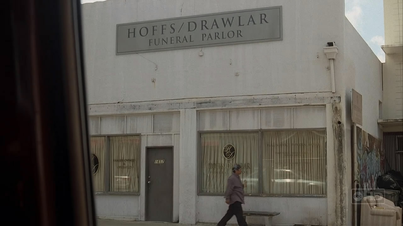 The Hoffs/Drawlar Funeral Parlor is a funeral home in a gritty, low-rent neighborhood of Los Angeles. In 2007, approximately three years after the crash of Oceanic Flight 815, the funeral parlor's director arranged the burial of Jeremy Bentham. ("Through the Looking Glass, Part 2")