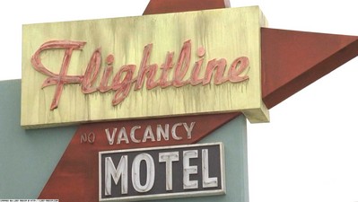 The Flightline motel's sign.