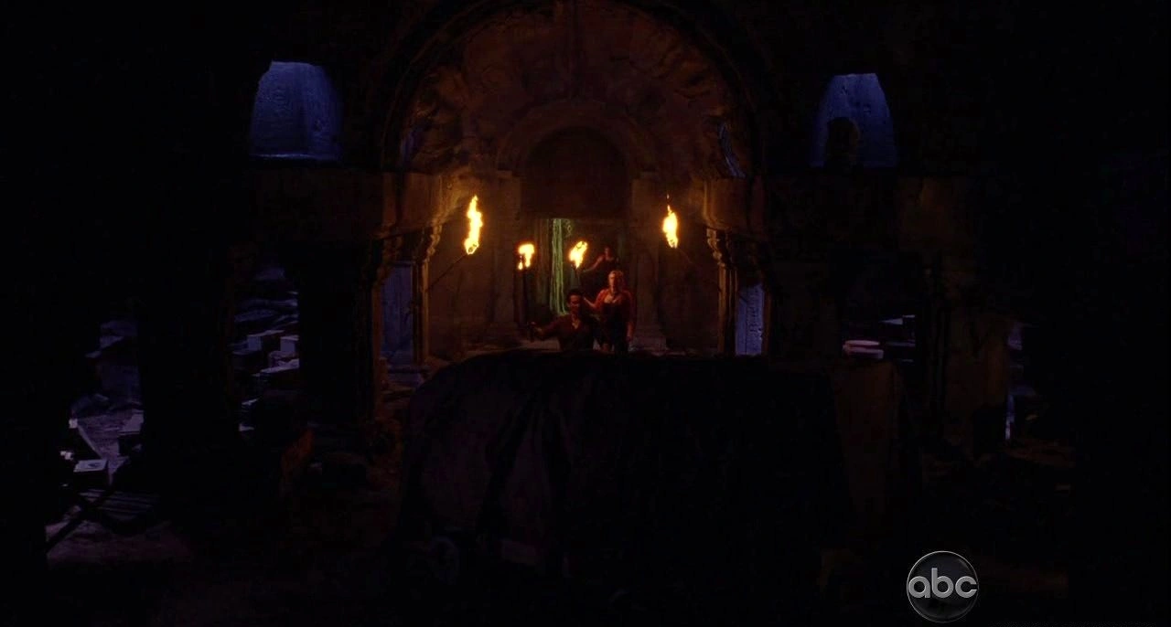 The group came upon a pond near the Others camp where an underwater passage led to a series of "tunnels" as described by Richard (which had architecture similar to the Temple). The hydrogen bomb was found preserved within these halls. ("Follow the Leader")