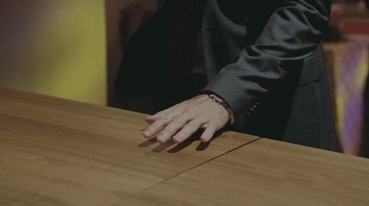 He steps away from the coffin. Then he steps forward again and opens it. It's empty.