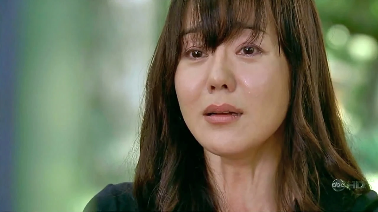 While reminiscing in her old garden, Sun is confronted by the Man in Black. In an attempt to escape him, Sun runs into a tree and is knocked out. When she awakes, it is realized that she understands English, but can only speak Korean. Later, when Richard returns and says that they need to blow up the Ajira plane, Sun is angered and yells and Richard in Korean saying that she came to get Jin, not to save the world. ("The Package")