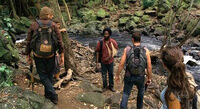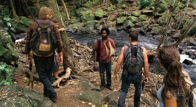 In the morning, Sawyer theorizes on who are the Others: DHARMA folks? Aliens? As the group is walking alongside a small river, Kate spots two Others stalking them on the other side. They begin the short Jungle skirmish.