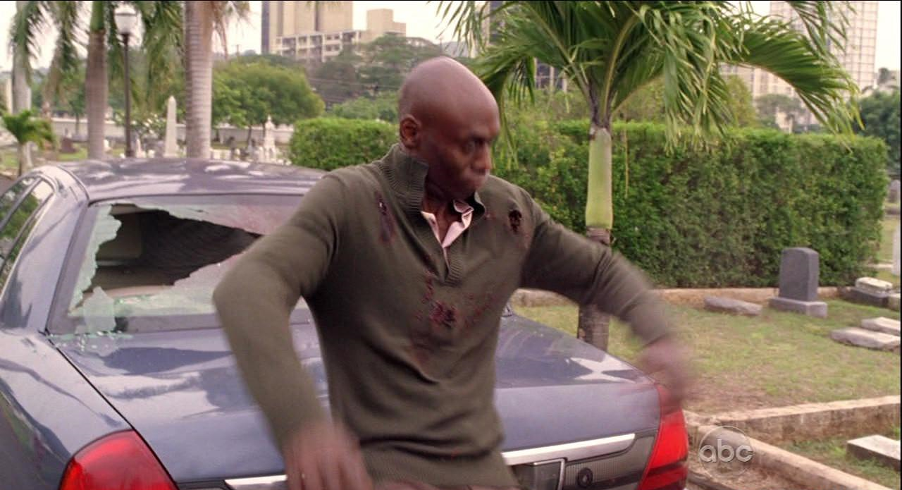 While preparing to leave the cemetery, Abaddon was suddenly shot by an unseen attacker, his blood showering the now broken rear windshield of the car. Completely astounded, he took two more bullets to the torso before finally collapsing dead on the road. Benjamin Linus later told Locke that it was he who had shot Abaddon, who he claimed was "extremely dangerous" and would have tried to kill Locke in due time. ("The Life and Death of Jeremy Bentham")