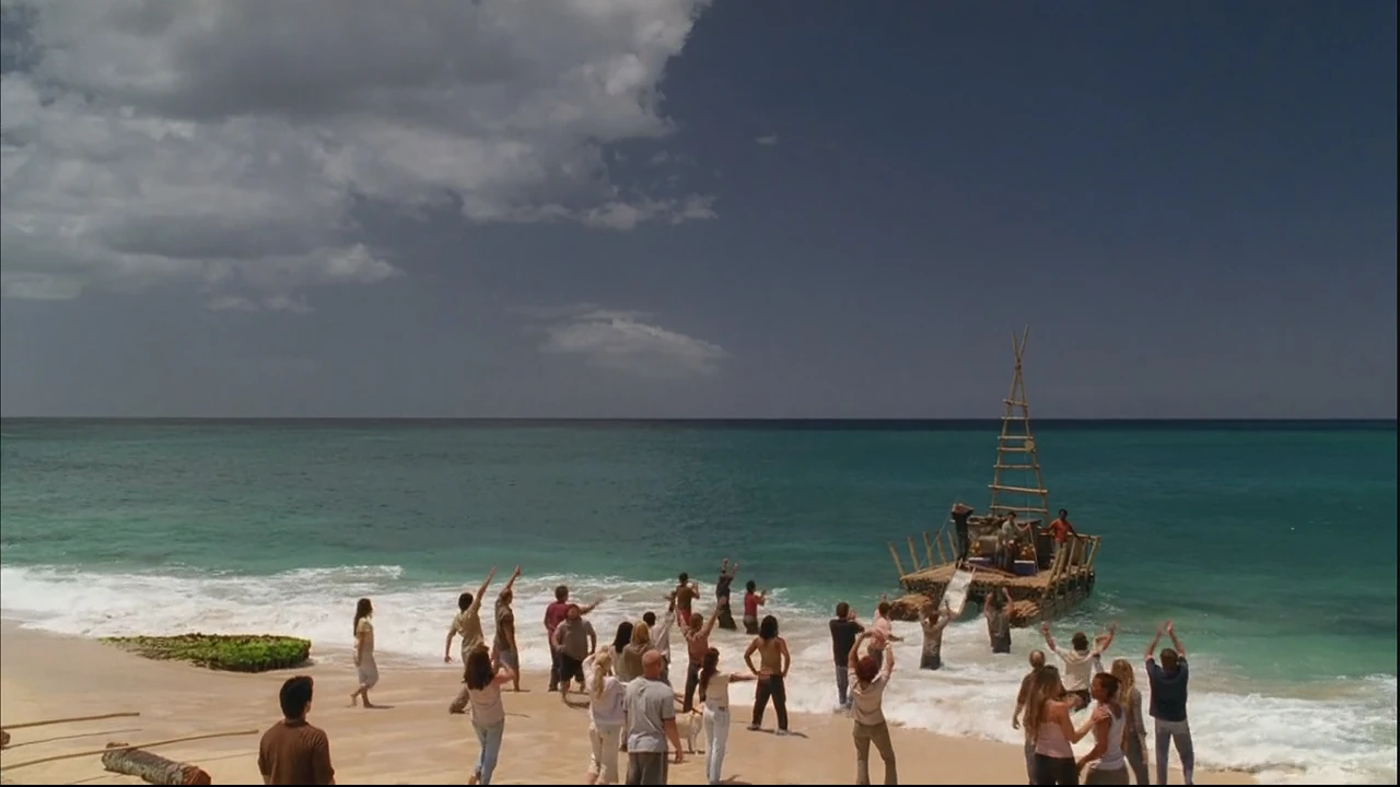- In a Previously on Lost recap, the raft launches. ("Adrift")