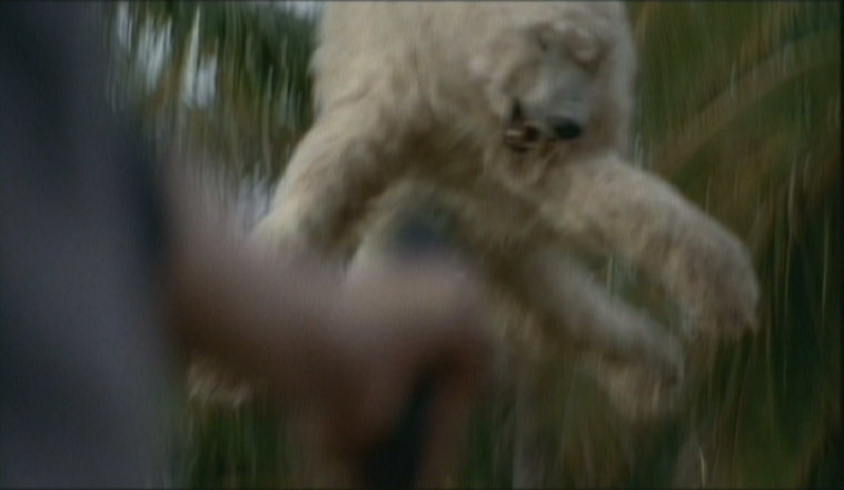 Walt was later attacked by a polar bear in the jungle. He hid inside a Banyan tree while the polar bear rammed at him. During this encounter, one can allegedly hear the polar bear say "Walter" as it swiped at the tree. ("Special")
