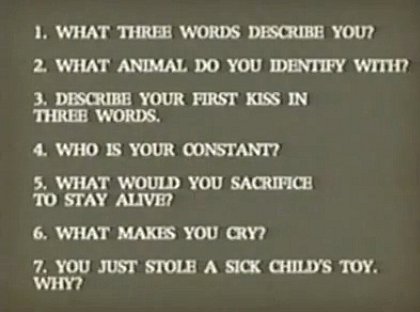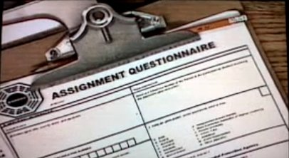 The DHARMA assignment questionnaire is a list of questions used by the 1970s DHARMA Initiative to evaluate job recruits. The questionnaire was shown in the extended version of the Barracks video.