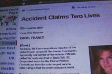 Rachel: Darla I’m sorry, I didn’t hold up my end of the deal. If it was a trap meeting GidgetGirl here in Paris, I wanted it on camera. If it wasn’t her that called and it could have been anybody, I thought the camera, maybe that could somehow save me. (shows the secretcam) I arrived ten minutes early. And waited. And waited. The article Maybe she showed, saw the glasses knew I had a camera, maybe she balked. I’ll never know. Remember this face (shows screen of news report saying “Accident Claims Two Lives”). McIntyre, 38, communications director of the philanthropic non-profit the Hanso Foundation apparently lost control of the vehicle. Officials pulled his body and that of Darla Taft, corporate liason for the Global Welfare Consortium from the submerged car initial ruling is that the crash was accidental. It was no accident! They were murdered! I…I can’t do this anymore, GidgetGirl, Darla, was a good person. We had a trust. I knew from the beginning that she was Hugh’s mistress and she knew that I was Perseph…(gunshot noises, then glass shattering) Someone's shooting at me?! (gunshots) Someone’s shooting at me!! (Phone rings) Man’s voice: Open the door! (knocking) Rachel: Oh my god! (knocking) |