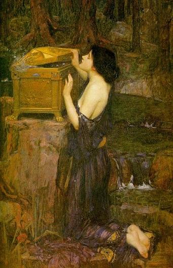 Pandora: A John William Waterhouse painting of the classical Greek myth, Pandora's box, resembling the Hatch.
