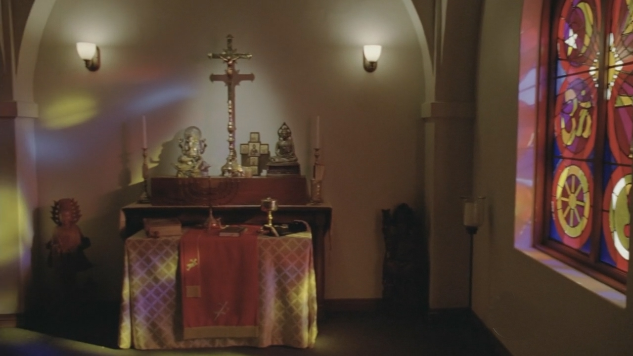 "Dharma," "namaste," "Achara" and "108" have meanings in Hinduism as well as Buddhism. Karma, which several characters reference, is a central Hindu concept, and Colleen's funeral in "The Cost of Living" included dress and procedures reminiscent of Hindu customs.