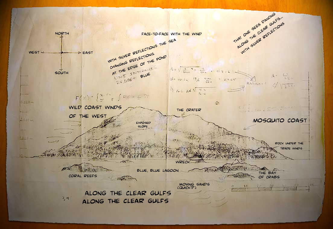 Rousseau's full map and notations, seen at the Comic-Con 2009 auction preview.