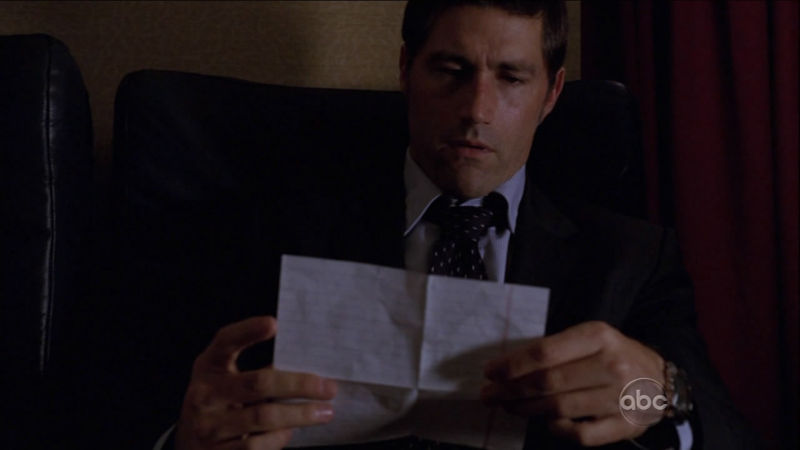 Meanwhile, Penny rushes Desmond to the hospital, where he nearly dies but is ultimately saved, and promises to never leave Penny again. On Flight 316, after a few hours in the air, Jack tells Ben he was given Locke's suicide note, and Ben advises Jack to read it, and leaves, giving him privacy. Jack reads the note which states "Jack, I wish you had believed me. JL." Immediately after Jack reads the note, the plane encounters heavy turbulence and after a moment is engulfed by a flash of bright light.
