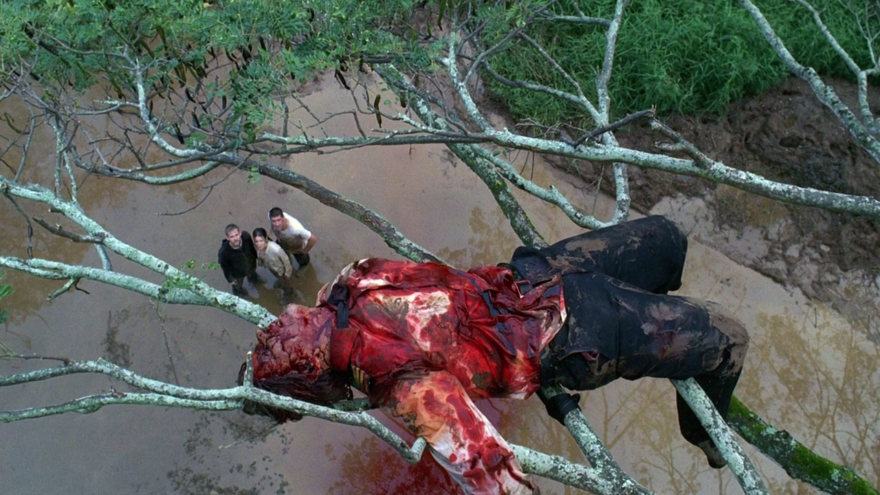 He then showed Jack and Kate where the transceiver was and crawled out of the front cockpit windows to look around after the same noise from the night before occurred again. Sounds of the Monster approached, and the pilot was ripped upward from the cockpit through a windshield, kicking and screaming. Moments later, blood splashed across the front of the plane. The plane shook, then fell flat on its belly. Shortly thereafter Kate and Charlie found the pilot, dead, mangled in a tree. ("Pilot, Part 1")