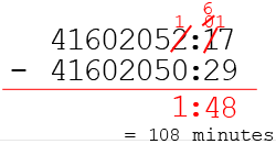 - Between the timestamps, there are only a few seconds. Not 104 to 108 minutes. Can not be the moment one of the numbers or a digit was entered either.
