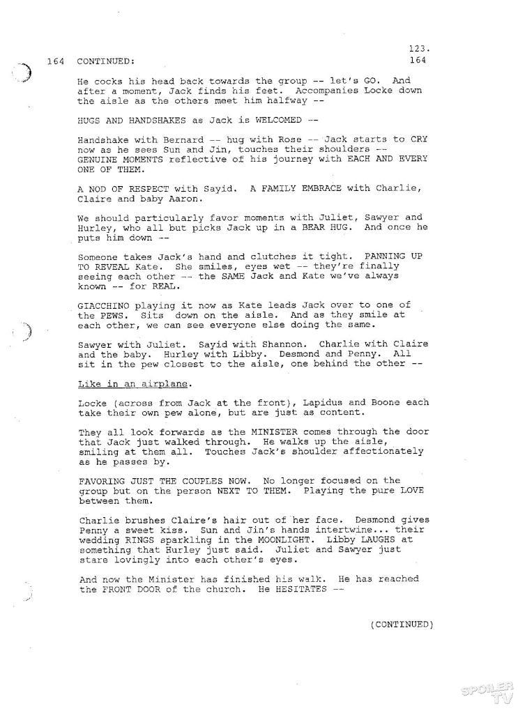 - ↑ SpoilerTV.co.uk The End Script, Scene 162