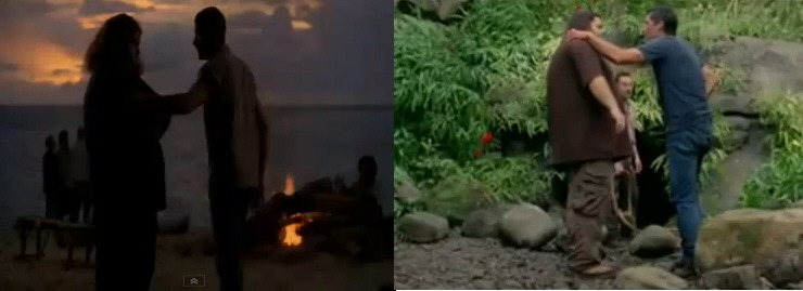 - Jack, Kate, Hurley and Sawyer meet the Man in Black, Ben and Desmond on the very same ridge where the survivors met Ben and Alex in the Season 3 finale. ("Through the Looking Glass, Part 1")