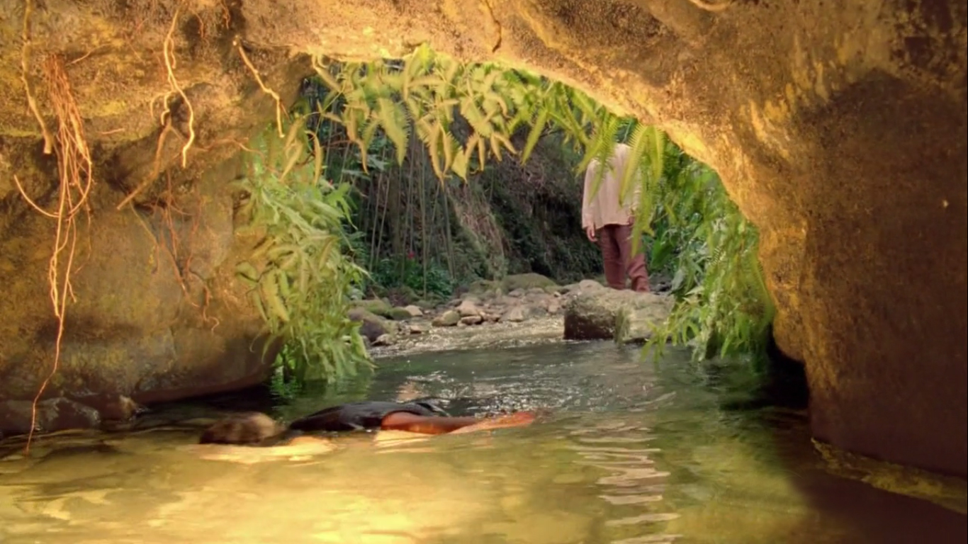 Jack and The Man in Black look down the cave into the Heart of the Island.
