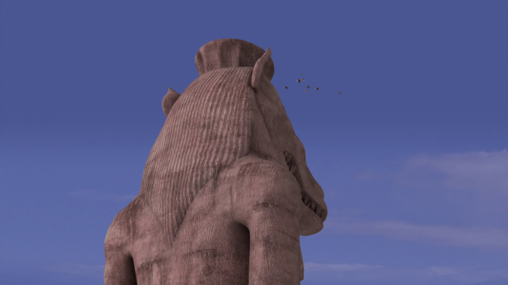 The Island submerged underwater, along with the broken Statue of Taweret. ("LA X, Part 1")