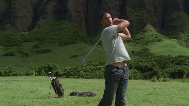 In the hills is a plateau called the Mesa where Hurley's golf course was located. Hurley rode the DHARMA van on the Mesa. ("Enter 77") The caves are also located near the Mesa. There is also a cliff next to some mountains that was viewed from afar by Sayid, Charlie, and Ana Lucia while searching for Henry Gale's balloon. ("The Whole Truth"). Finally, multiple ravines exist on the Island, such as one that Jack nearly fell into, or one which was crossed by Hurley and Charlie using a rickety rope bridge. ("White Rabbit") ("Numbers")