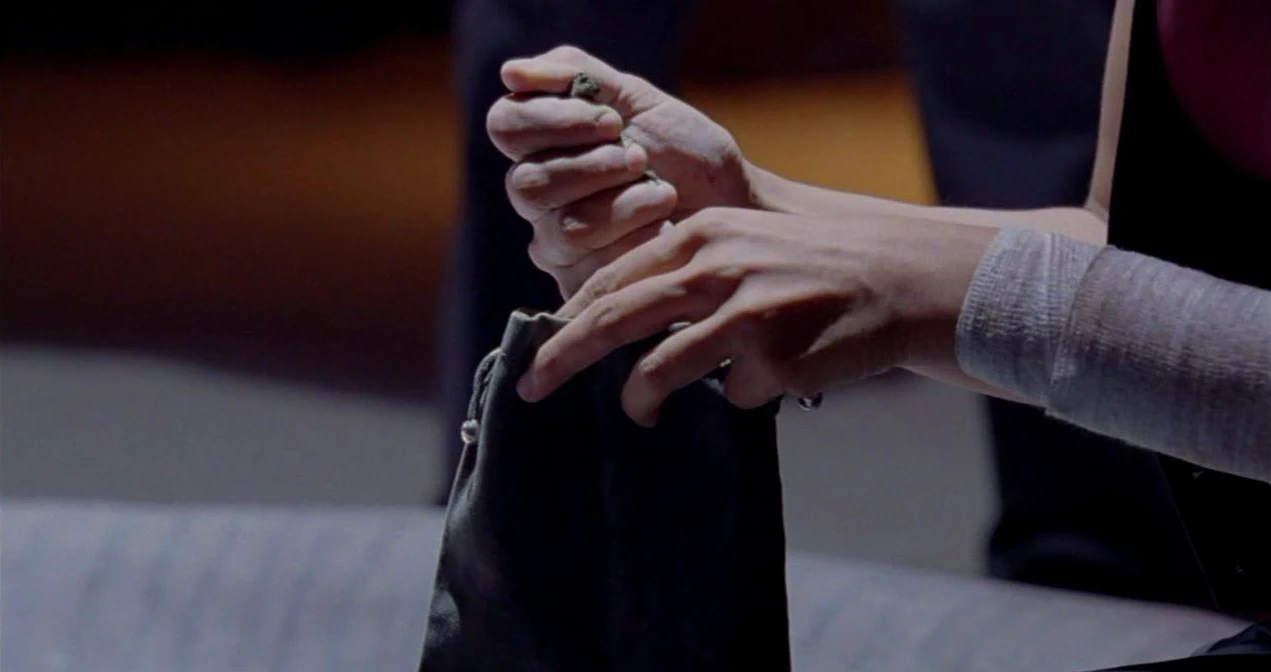 - The Man in Black removes a white stone from a scale while in the caves, tipping the scale in favor of a black stone. (Symbolism)