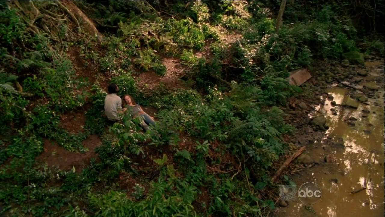 Before Jin can react, he hears a gun being cocked and someone ordering him to turn around. Obeying, he discovers that it is Sawyer, accompanied by Daniel, Charlotte, Miles, Locke, and Juliet. Sawyer and Jin happily embrace each other, but Jin is dismayed when he doesn't see Sun and asks about her. ♪ With Charlotte's help translating Korean, they communicate the situation to him. They resume traveling towards the Orchid Station.