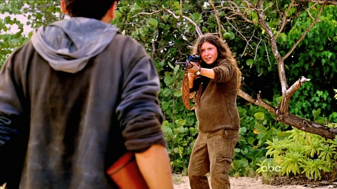 Danielle is accusing Robert of not being her husband, asserting that he has become infected by the monster. Robert tries to reassure her that he still loves her and has not changed. He insists that the smoke monster is not a "monster" but merely a security system for the temple that they discovered. Robert asks her to put down her gun. When she lowers her weapon Robert raises his towards her and pulls the trigger, but Danielle had already removed the firing pin and the gun fails to fire. Horrified, Danielle shoots Robert in the head. When Jin cries out in alarm she turns towards him, recognizing him from his disappearance. Insisting that he too is infected, and that he was "the carrier," she begins firing at him. Jin rushes into the jungle to hide and experiences another time flash.
