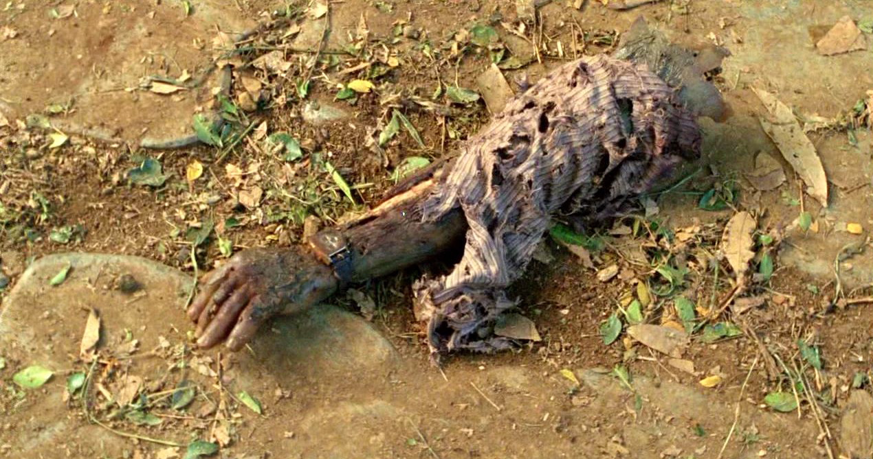 - Montand's arm is ripped off. After the next flash, Jin sees the decayed arm. (Missing body parts)